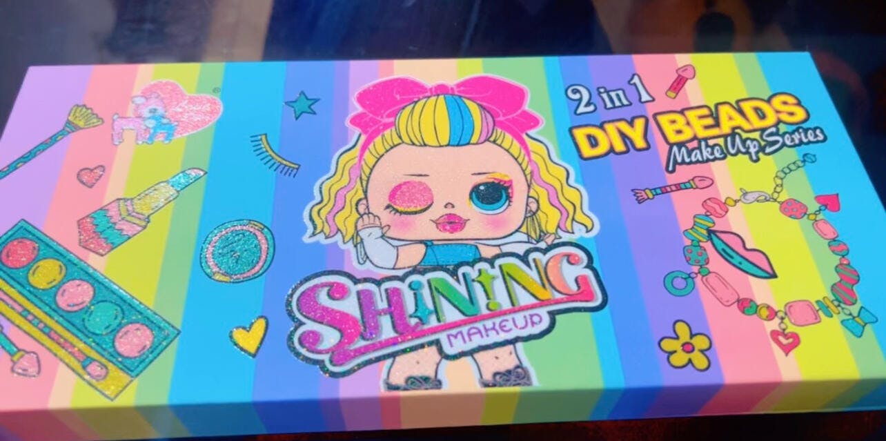 The 2 in 1 DIY Beads & Shining Make-Up Set is a versatile and entertaining kit that combines the fun of crafting custom jewelry with the creativity of applying makeup, providing a delightful and safe play experience for children.