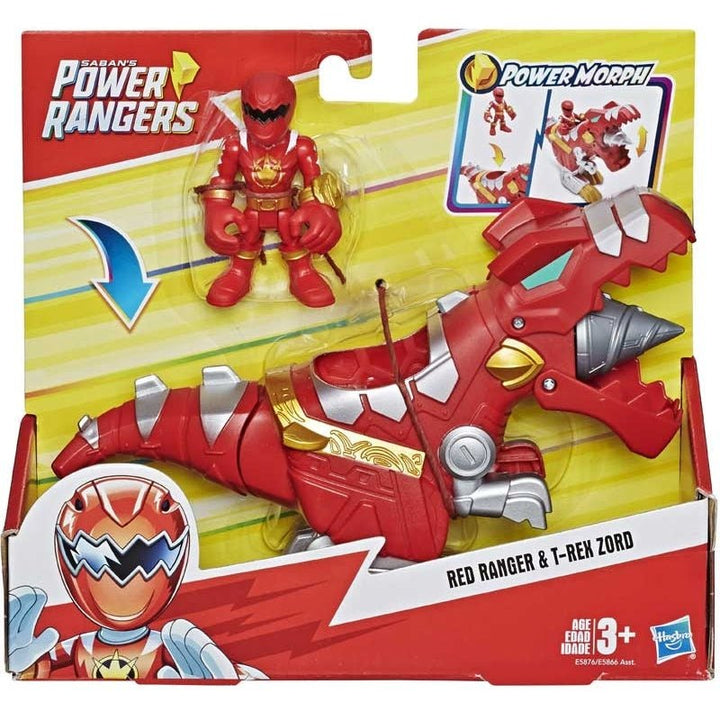 Imagine charging into battle alongside the Red Ranger and T-Rex Zord with these Power Rangers Red Ranger and T-Rex Zord 2-pack! The collectible 3-inch action figurines are sized just ideal for smaller Rangers, allowing boys and girls to get a grasp on enormous fun! Kids ages 3 and up will enjoy changing the Zord figure to beast mode and back again, which comes with two modes of play. These figurines include Power Morph activation, which adds to the enjoyment. To activate dual pop-up missile launchers, place the Ranger figure on the Zord figure's platform in either Zord or beast state. Push a button to launch each missile!